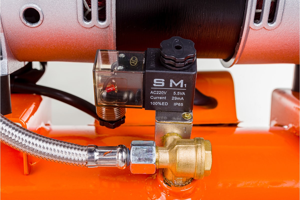 - Предохранительный клапан для ограничения максимального давления сжатого воздуха в ресивере и защиты его от разрушений и перегрузок;