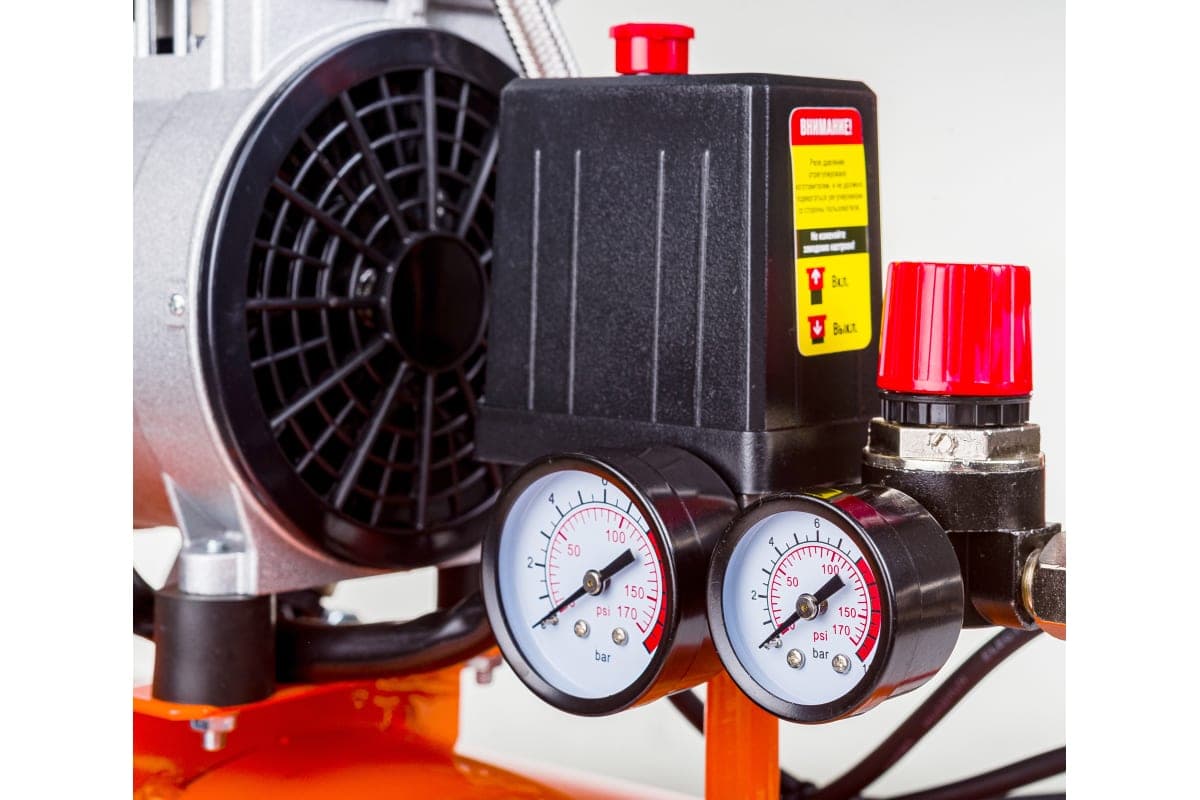 - Визуальный контроль. Манометры позволяют визуально контролировать давление на выходе Кратон AC-180-24-OFS 3 01 01 052 и в ресивере.