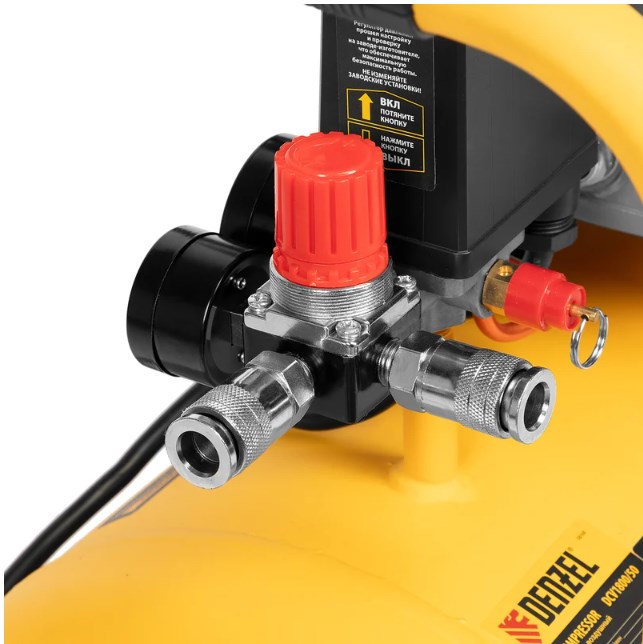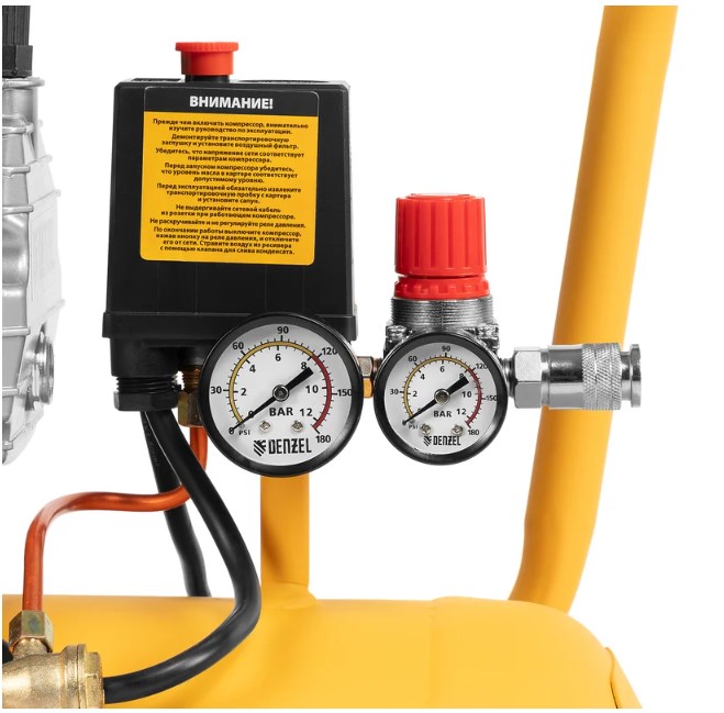 Воздушный компрессор с прямым приводом Denzel DCV1800/50 58168 мощностью 1,8 кВт и производительностью на входе 320 л/мин, с объемом ресивера 50 л, подходит для обеспечения длительной работы пневмогайковерта, пневмозубила, пневмодрели, пневмомолотка или другого пневмоинструмента. Быстроразъемные коннекторы Рапид (Евро) облегчают подключение пневмомагистралей. Эффективная система смазки снижает износ деталей и уменьшает нагрузку на двигатель, что позволяет использовать компрессор в профессиональной сфере.