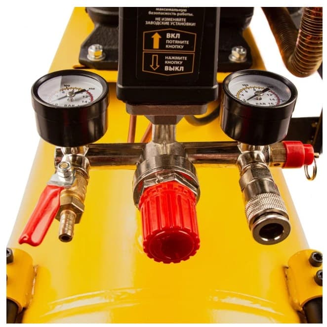 Воздушный компрессор с ременным приводом DENZEL BCW3000-T/100, 3,0 кВт, 100 литров, 520 л/мин 58118 обладает высокой мощностью и производительностью, что позволяет использовать его для организованной подачи воздуха через магистраль.