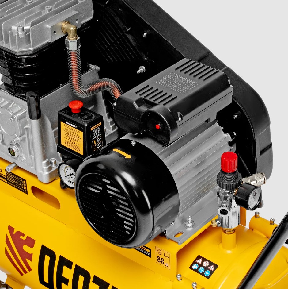 Воздушный компрессор Denzel BCI 2100/50 58115 с ременным приводом, мощностью 2,1 кВт и производительностью 400 л/мин, с ресивером объемом 50 л, — источник сжатого воздуха для работы с пневмоинструментом: пневмогайковертом, пневмодрелью, краскопультом, углошлифовальной машиной и т.д. Для подключения инструмента предусмотрено 2 быстросъемных коннектора Рапид (Евро). Специальный порт позволяет подключить напрямую дополнительный ресивер или пневмомагистраль. Компрессор будет полезен на строительной площадке и станции техобслуживания.