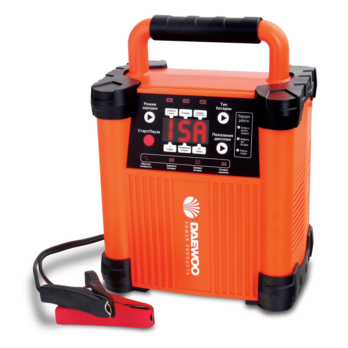 Зарядные устройства DAEWOO оснащены интеллектуальной системой диагностики состояния и уровня заряда аккумуляторной батареи, что позволяет не только автоматически подобрать оптимальный режим зарядки, но и, при необходимости, поддерживать батарею в состоянии полного заряда.