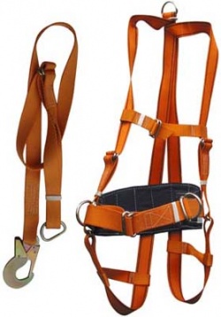 Ленточный строп и карабин, фиксирующий его в нужной точке крепления.