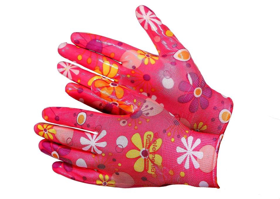 Перчатки нейлон с ПУ обливом Цветочек арт. 0128 в Красноярске