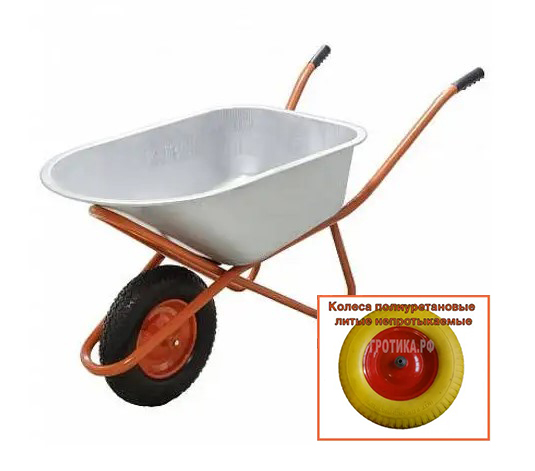 Колесо полиуретановое, литое, бескамерное не боится проколов. Большой диаметр колеса позволяет перевозить более тяжелый груз с меньшим усилием на руки.Большой диаметр колеса позволяет перевозить более тяжелый груз с меньшим усилием на руки.