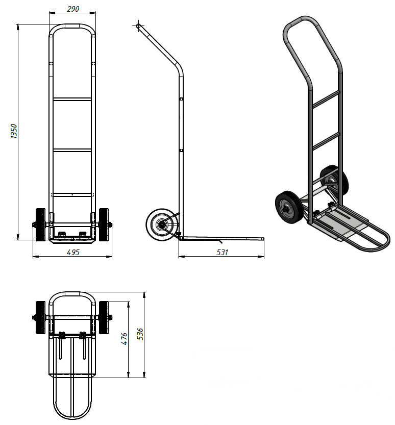 Тележка КГ 150 П с откидной полкой, колеса пневмо в Красноярске