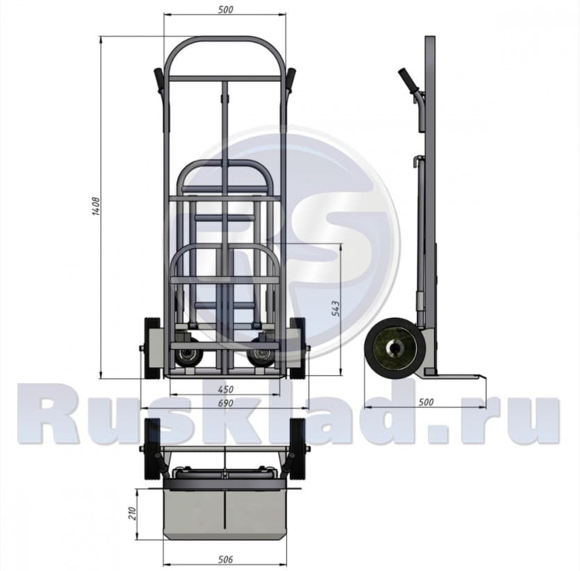 Основной каркас изготовлен из профильной трубы сечением 40х20 мм, усиленные ребрами жесткости крылья тележки, обеспечивают надежность и заявленную грузоподъемность 300 кг.