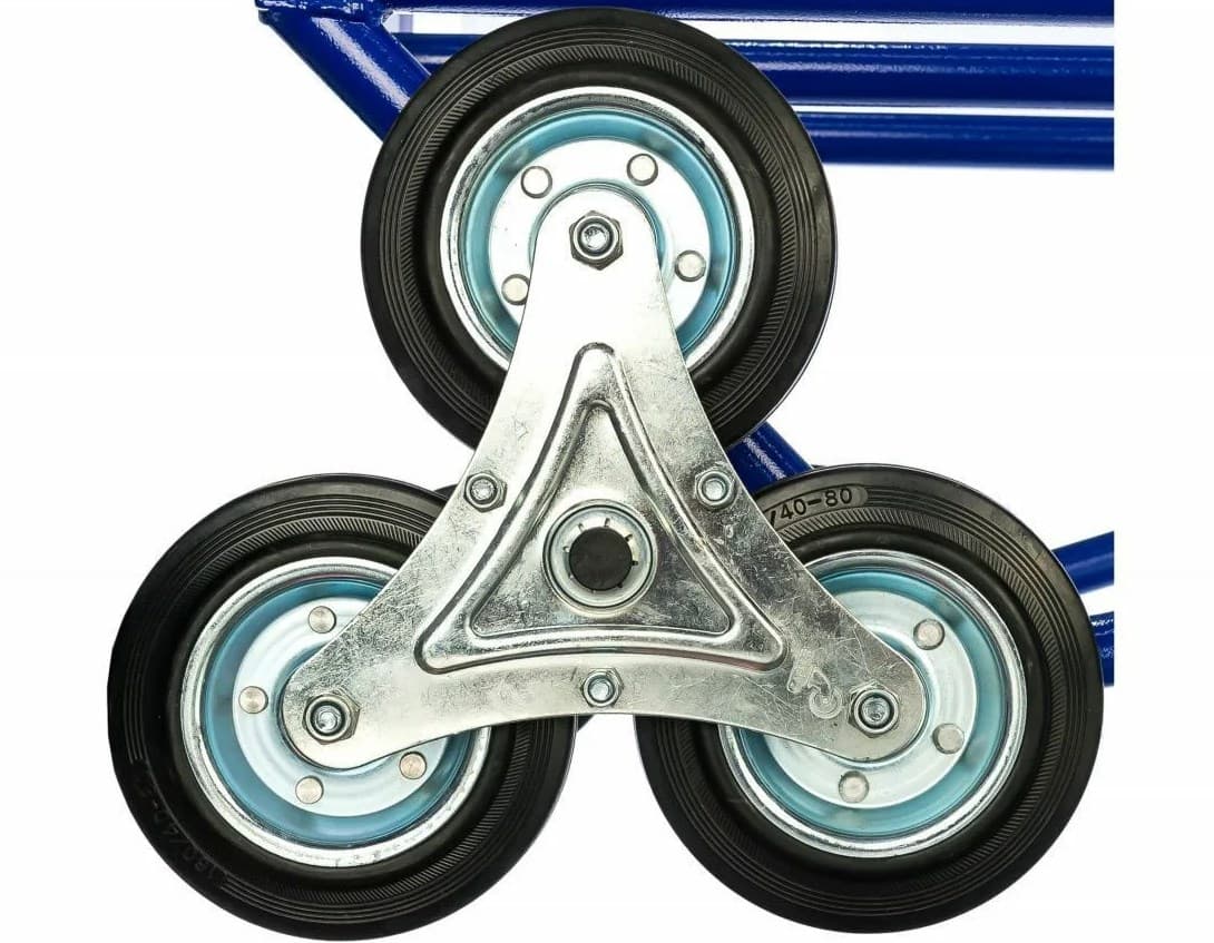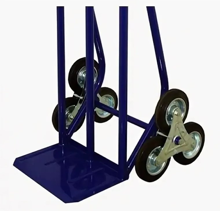 Облегченная универсальная двухколесная тележка компактных габаритных размеров на лестничных колесах.