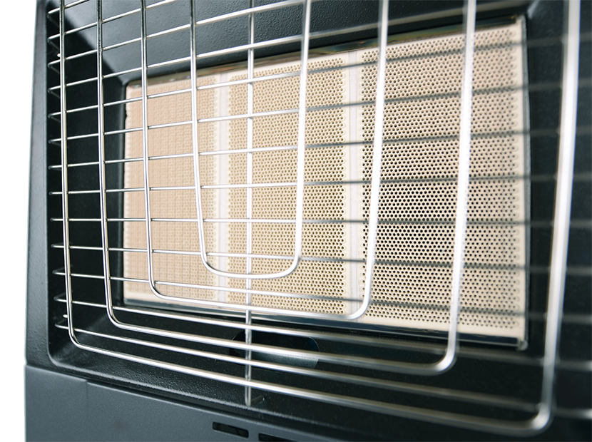 Прибор функционирует в трех режимах мощности, обогревая помещения площадью до 60 м². Бесперебойная работа на протяжении многих лет достигается благодаря многоуровневой системе безопасности, в которую входит: защитная термопара для контроля пламени, датчики аварийного отключения при опрокидывании и превышении уровня углекислого газа. Кроме того, специальный фиксатор предотвращает случайное выпадение баллона при перемещении прибора. Газовый инфракрасный обогреватель BIGH-55 мобилен и легок в перемещении - за счет усиленных шасси он свободно перемещается по любой гладкой поверхности.