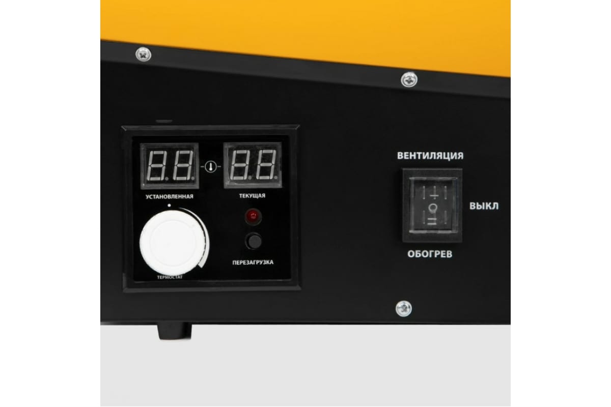 - Цифровой термостат — если температура в помещении становится ниже заданной, пушка включается автоматически для точного поддержания выставленных значений.