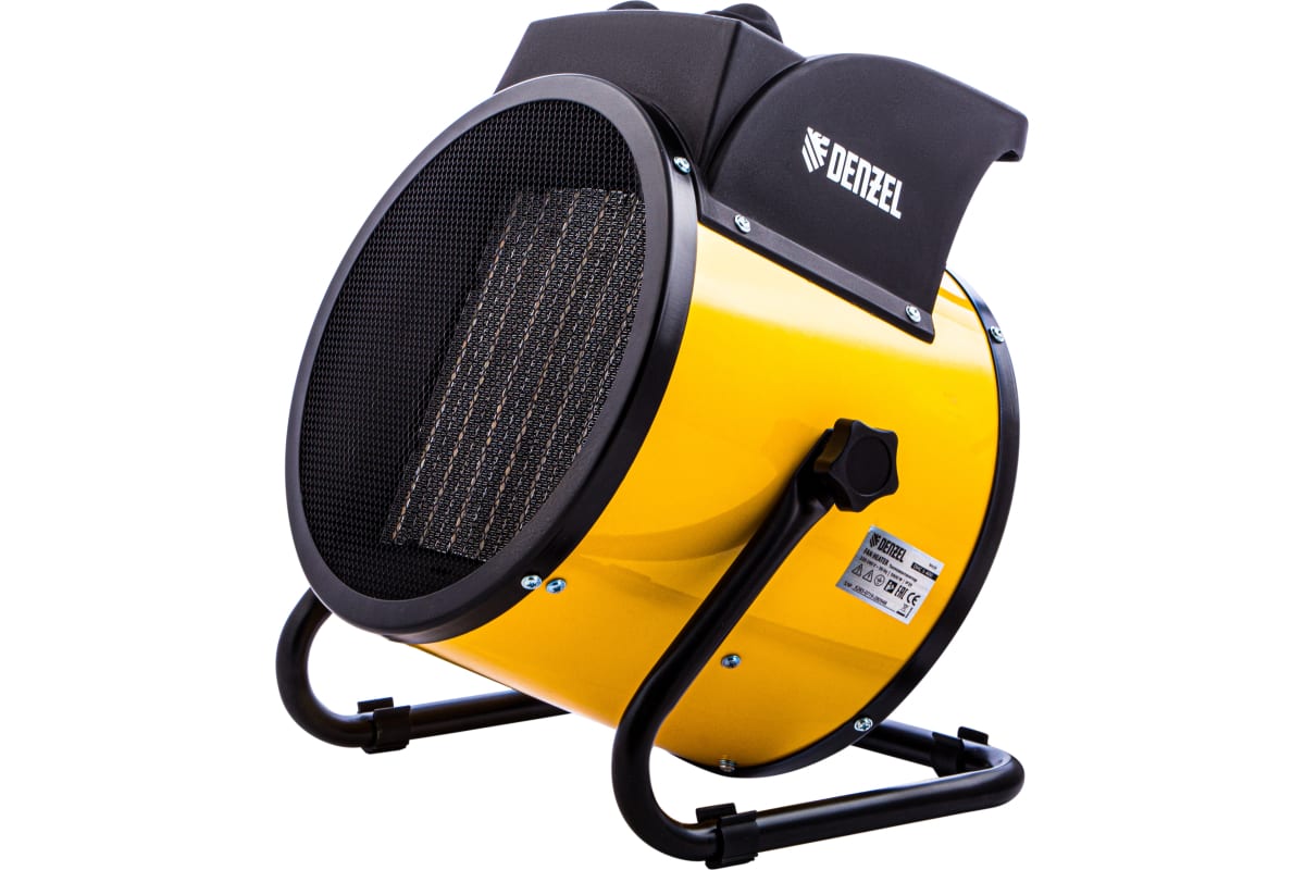 Тепловая пушка (тепловентилятор) Denzel DHC 5-400 96428 с керамическим нагревательным элементом работает на мощности 0,04/3/5 кВт. Пригодится в любую погоду: в холод обогреет помещение, в теплое время года может использоваться как вентилятор. Также пушка применяется во время отделочных работ для просушки поверхностей — окрашенных и оштукатуренных стен, стяжек и т.д.