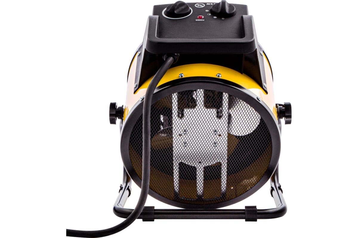 Максимальной мощности 5 кВт хватит для обогрева помещения площадью до 50 кв.м. Работа тепловентилятора не доставляет дискомфорт, безопасна для здоровья людей и животных, поскольку керамический нагревательный элемент не сушит воздух и не выделяет вредных веществ.