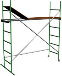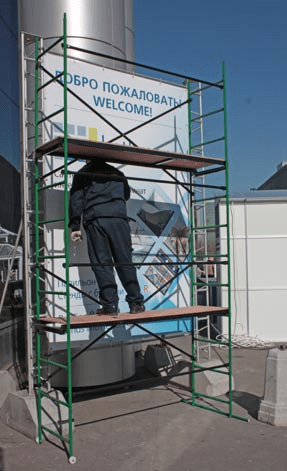 - подмости укомплектованы двумя колесами (полиэтилен низкого давления) и стабилизатором;