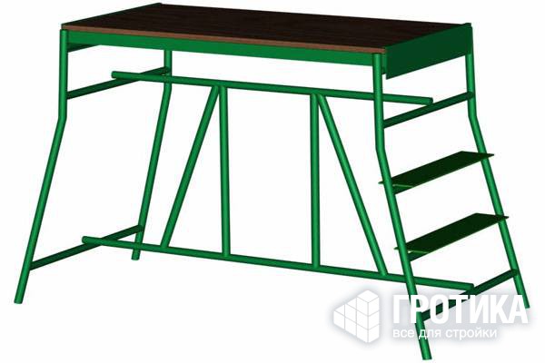 - простота сборки — две боковые стойки соединяются с основой и фиксируются в рабочем положении съёмным настилом;