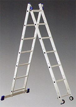 Лестницы такого типа могут эксплуатироваться в расширенном диапазоне высот, при этом сохраняя компактность при хранении. Полезная нагрузка 150 кг. Из стоек помоста собирается универсальная лестница из 2-х частей.