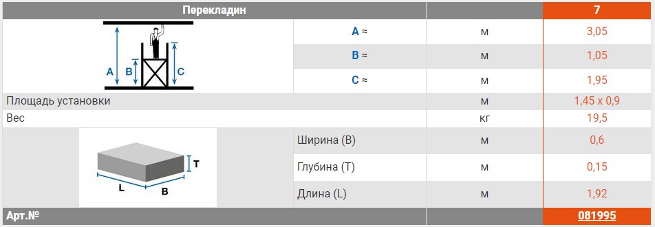 - Рабочая высота: до 3,05 м.