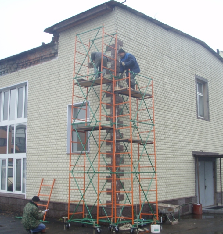 Для прохода сквозь дверные и узкие проемы требуется лишь снять настил и демонтировать стяжки базы, и развернуть вышку до придания ей формы ромба.