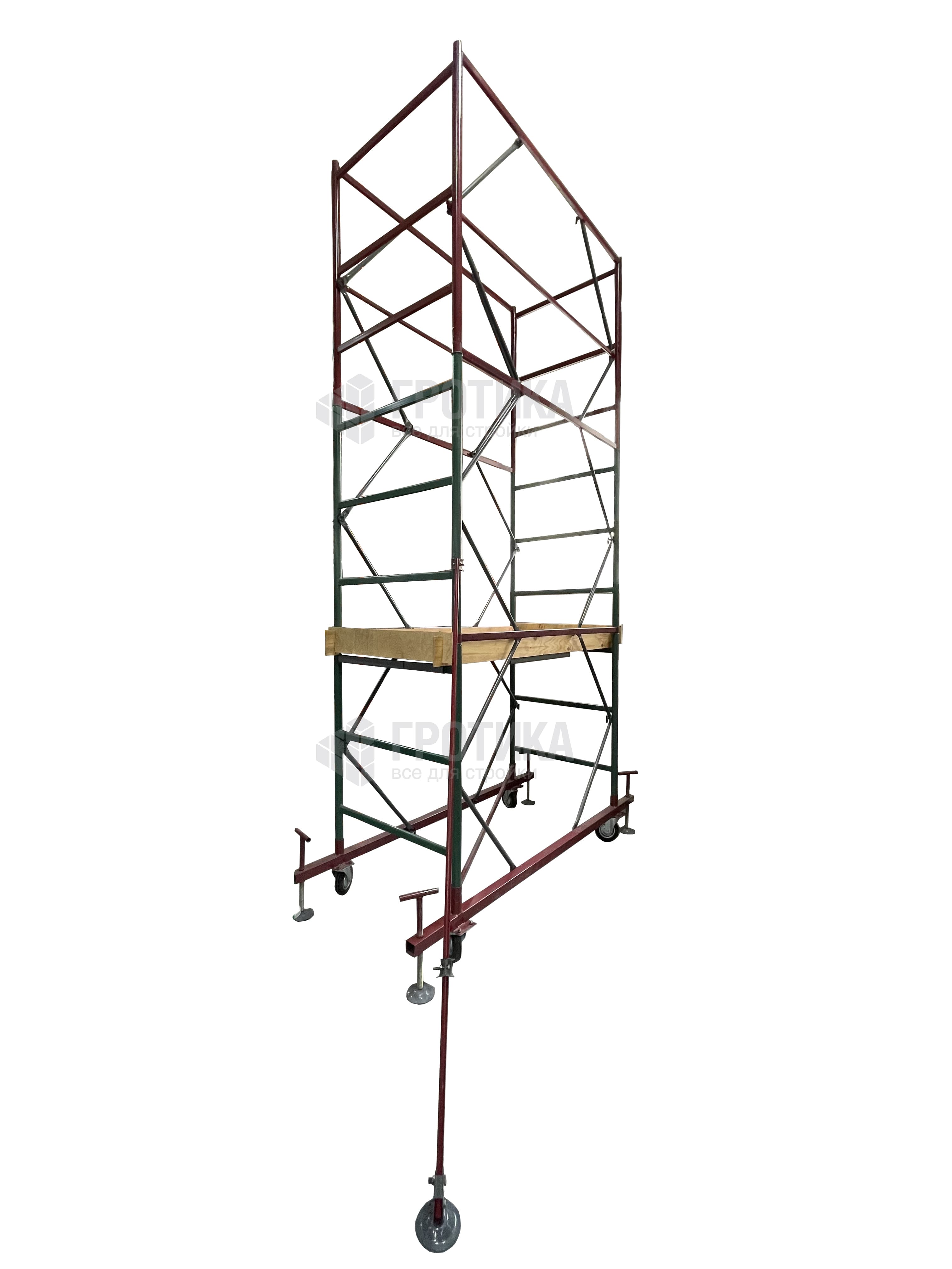 Высота вышки-туры 11,1 метр, может быть увеличена дополнительными секциями до 21 метра. Для устойчивости конструкции вышка комплектуется стабилизатором.