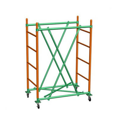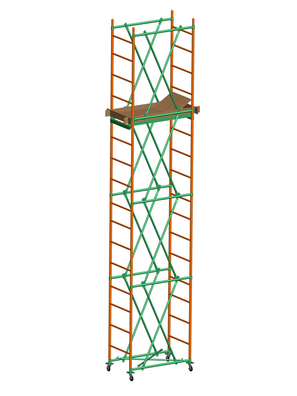 Для прохода сквозь дверные и узкие проемы требуется лишь снять настил и демонтировать стяжки базы, и развернуть вышку до придания ей формы ромба.