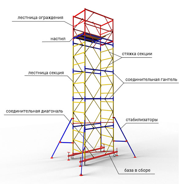 Наделена прочными диагональными стяжками, которые предотвращают самопроизвольное перемещение вышки при ее эксплуатации.